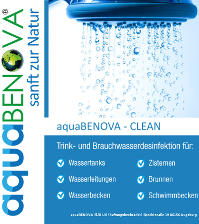 Trinkwasser zählt durchaus zu den verderblichen Lebensmitteln – besonders wenn es längere Zeit in alten Leitungen steht, in denen sich bereits ein Biofilm gebildet hat. Der dient als Nährboden für verschiedene Keime, unter anderem die berüchtigten Legionellen. Gerät das Wasser wieder in Bewegung, weil ein Hahn geöffnet wird, transportiert es diese Kleinstlebewesen mit zum Verbraucher und kann ihn auf diese Weise kontaminieren. Eindeutig hat das Wasser hier seine Lebensmittelqualität verloren. Der Gesetzgeber sieht für diesen Fall eine Desinfektion des Leitungssystems im betroffenen Komplex vor. Diese kann unter großräumigem Einsatz von diversen gefährlichen Wirkstoffen oder Hitze erfolgen – oder aber unkompliziert, nachhaltig, zu überschaubaren Kosten mit aquaBENOVA Clean! aquaBENOVA Clean ist ein Biozid, das sich nach dem Einsatz in kürzester Zeit rückstandslos auflöst. In dieser Eigenschaft ist es unvergleichbar mit anderen Mitteln: Es beseitigt nicht nur pathogene Keime wie eColi, Pseudomonaden, Viren und Pilze im Trinkwasser, sondern zugleich auch den Biofilm als deren Ursprung. Mehr noch: Für geraume Zeit wird die Neubildung dieses Films verhindert, so dass das Wasser sauber bleibt. aquaBENOVA Clean hat also eine Deportwirkung und lässt sich zudem über die Jahre immer wieder verwenden – Resistenzenbildungen wurden bislang nicht beobachtet. aquaBENOVA Clean erfüllt sämtliche Vorgaben der Trinkwasserverordnung.